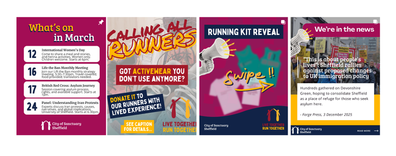 7th March 2026 Content for City of Sanctuary Sheffield In my volunteer role with the communications department at COSS, I create social media assets and support campaign planning.